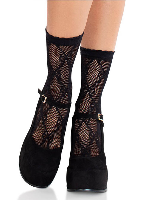 Medias de Encaje Bow Net de Leg Avenue en Negro