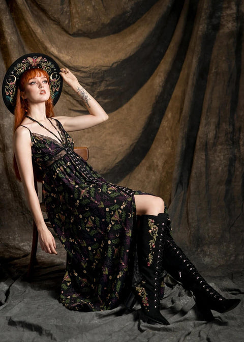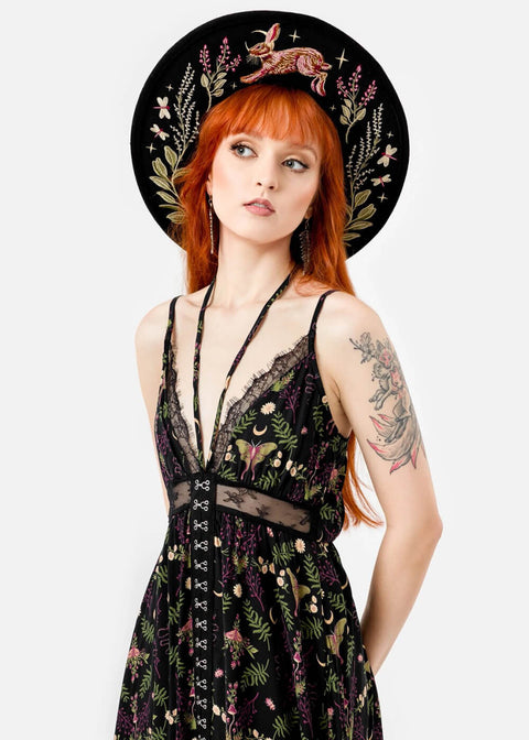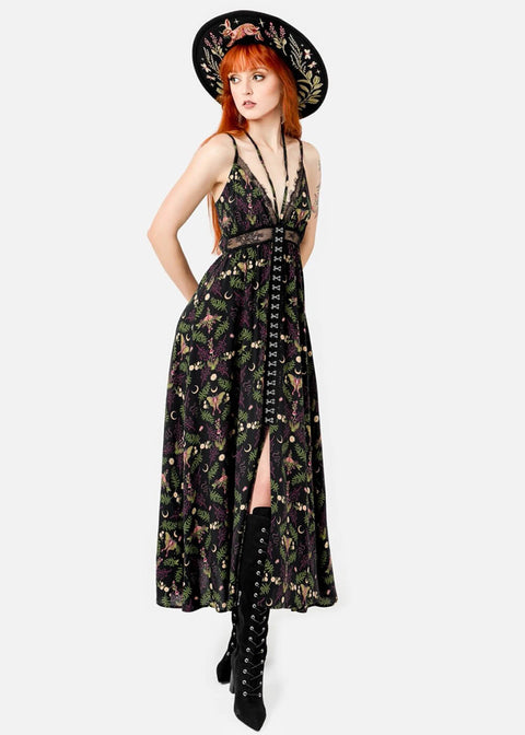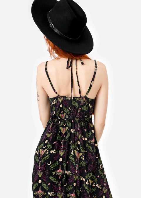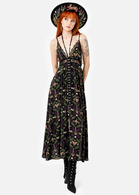 Restyle Wilderwood Moth Maxi Vestido Negro
