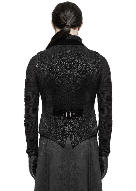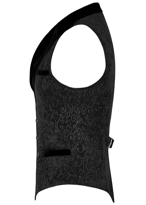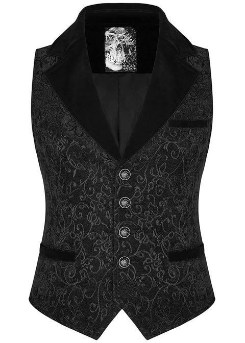 Voor een poetische vampierlook, weergaloze piraten outfit of omdat om zo in de Victoriaanse tijd te stappen, met Damon doe jij hoofden draaien! Met zijn bloemen-brocade, fluwelen details en elegante knopen is hij het perfecte gilet over jouw shirt. Door het riempje aan de achterkant geeft Damon een aansluitende pasvorm, perfect voor een gentleman als jijzelf. Wiens nachtmerrie stap jij als eerst in?