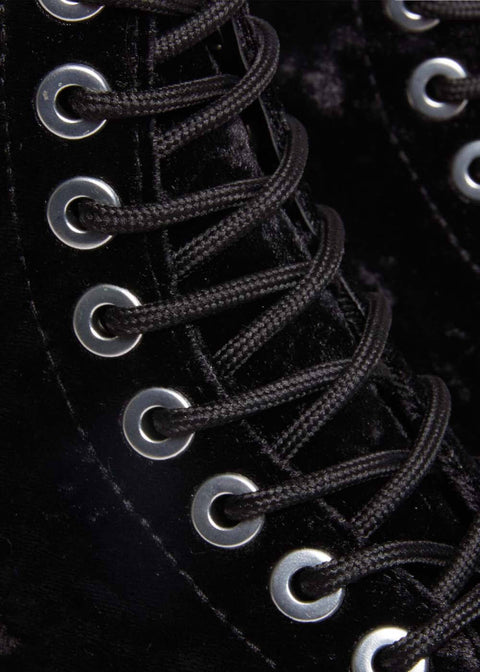 ¡El icónico modelo 1460 tiene más de 60 años, pero nunca ha sido tan suave con su terciopelo negro! El ADN de Dr. Martens es inconfundible: desde la lona vegana de alta calidad hasta las costuras amarillas y los 8 ojales. Ya sea con pantalones o bajo un vestido de los años 50, bailando Rock 'n Roll o en la oficina: ¡tú y tus Docs pueden conquistar el mundo!