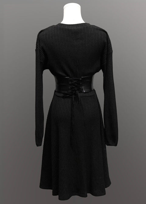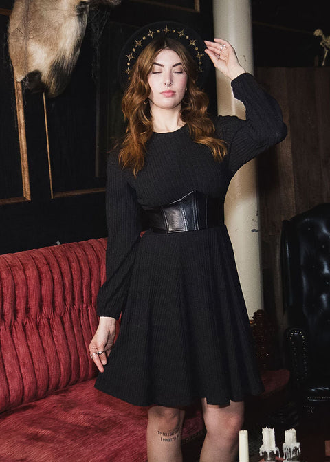 Witchwood Blythe Suéter Vestido Corsé Cuero Vegano Negro