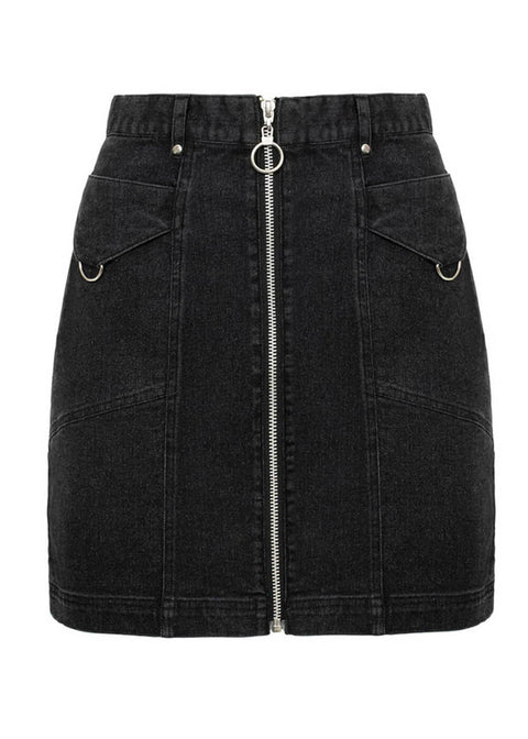 Falda estilo años 50 de Hell Bunny, modelo Raye: corte swing con volumen y color gris elegante.