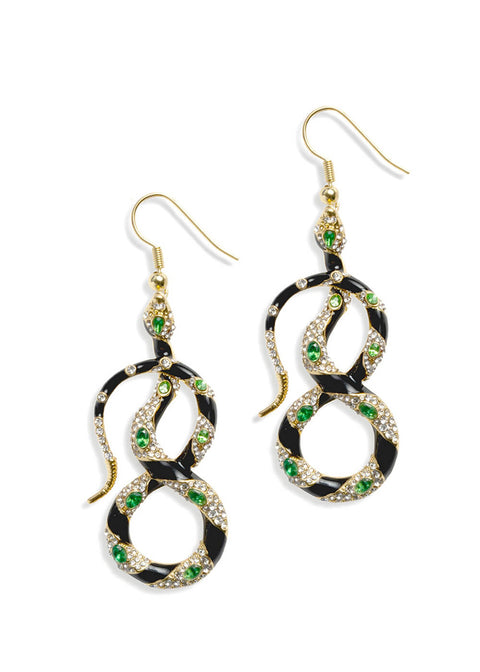 Las Bejewelled Snake caen con elegancia a lo largo del cuello y se mueven como si cobrasen vida: brillantes, misteriosos y de una sofisticación irresistible. El motivo de serpiente está acabado con baño de oro de 14 ct, esmalte negro pintado a mano y cristales verde esmeralda que atrapan la luz en cada paso.