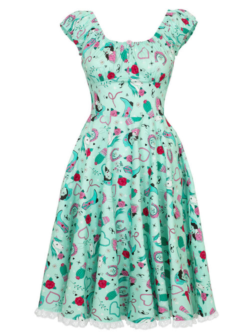 Hell Bunny Kellie Vestido swing años 50 en menta