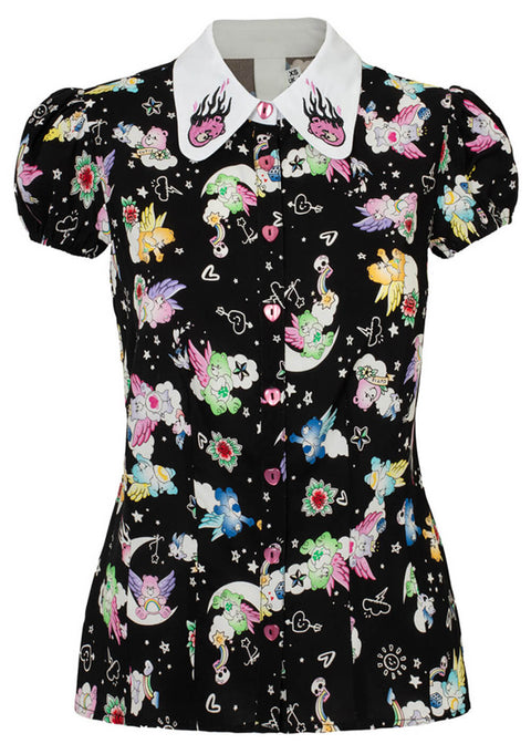 Hell Bunny x Care Bears Blusa Roxi 90's Negra