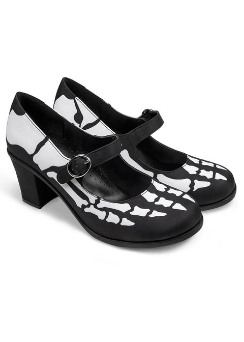 Hoe zou jij het vinden om in de schoenen van een skelet te staan? Waarschijnlijk best leuk. Nu kun je het echt proberen! Deze Ghoulish pumps zijn gemaakt van bedrukte stof en op de bovenkant pronkt een unieke skeletvoeten-print. Bad to the Bone!