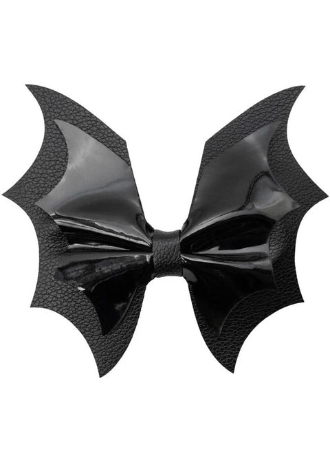 Lazo de pelo de estilo gótico fabricado en PVC brillante con diseño de alas de murciélago. Sujeción mediante pinza resistente, ideal para looks alternativos, rock o cosplay. Fácil de limpiar y cómodo de llevar, aporta un detalle llamativo al peinado.