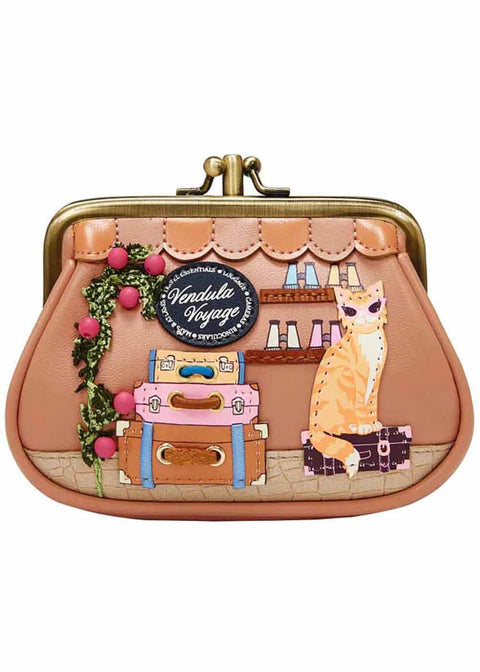 Esta gata glamourosa está lista para partir: ¡es hora del Voyage! Con su cierre tipo kiss-lock, esta cartera clip es un deleite para la vista y está preparada para proteger tu dinero en tu próxima aventura ♥